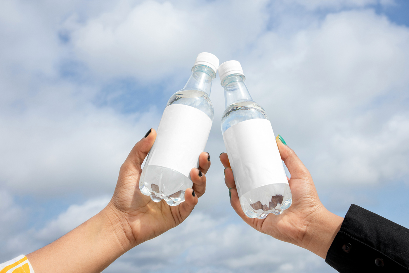 Бесплатные мокапы: Две бутылки в руках