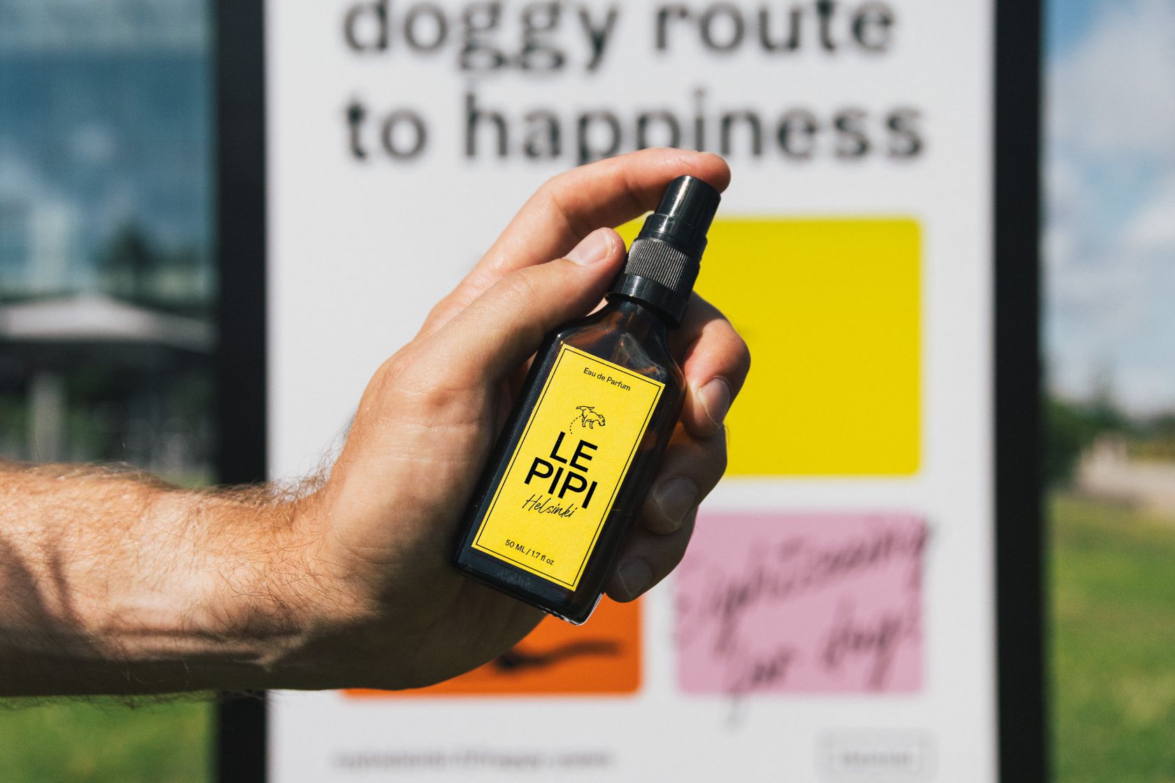 Рекламная кампания была настолько одержима собаками, как и сам маршрут. Билборды размещены на уровне собачьих глаз. Плакаты распылены с Le Pipi: уникальным ароматом, созданным, чтобы пробудить интерес. Мероприятие для докфлюенсеров (dogfluencers) с мисками «пива» для собак, регги и легким роком (научно доказано, что успокаивает щенков) и карикатуры, нарисованные местным иллюстратором.