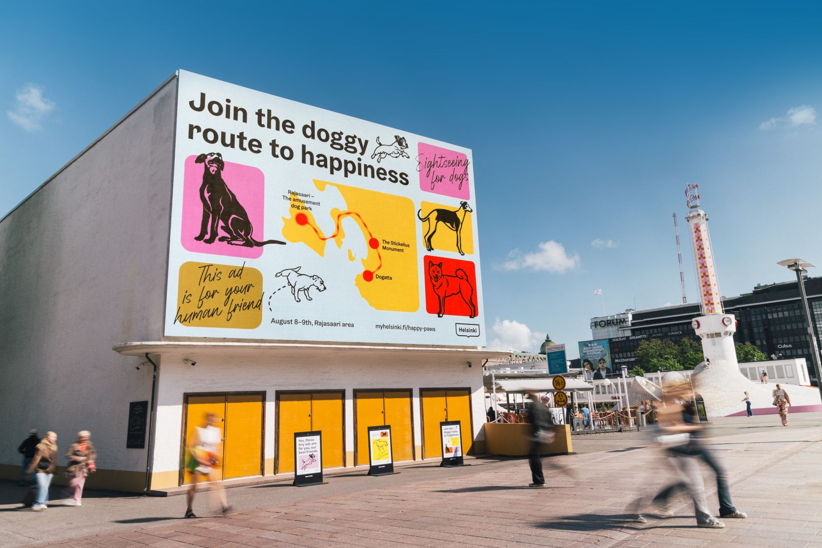 «Питомцы повышают уровень счастья», — говорит Соила Лехконен из Helsinki Partners. «Мы хотели создать достопримечательности в некоторых из самых любимых местах на улице, где могут наслаждаться как владельцы собак, так и их любимцы».