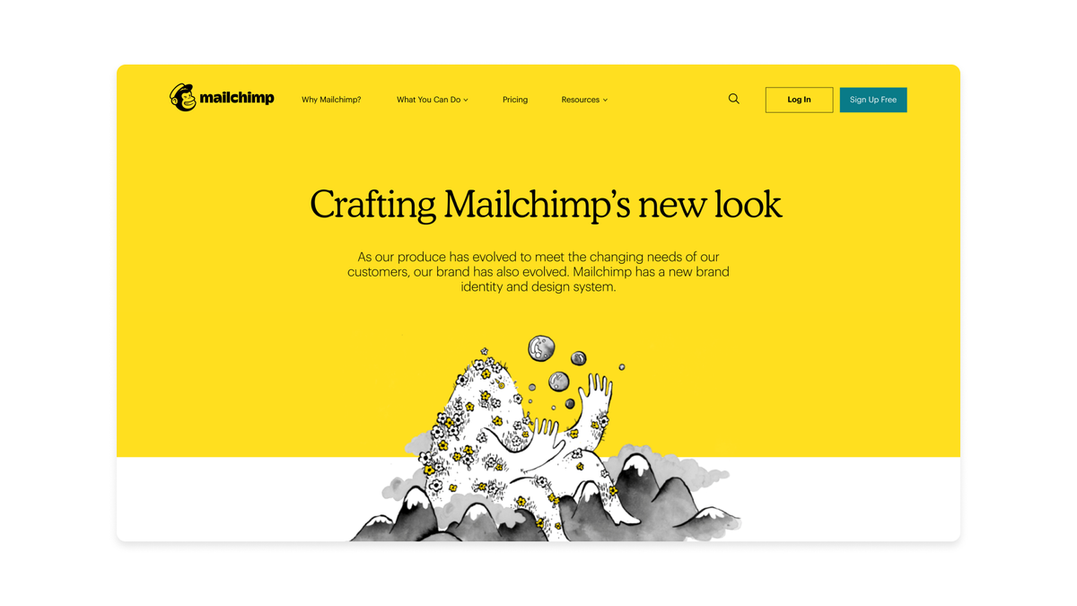 - Говоря о доверии, Mailchimp использует элегантный серифный шрифт Means и графический шрифт Graphik. Это как хороший друг, который говорит: "Эй, не переживай!". Доверие и привлекательность? На максимум! 🙌