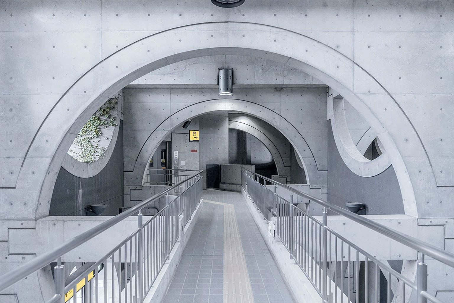 Прогуливаясь по фотографиям Инь Инь, вы сразу погружаетесь в атмосферу самого места. Материал: бетон, стекло и металл – все элементы становятся главными героями этой истории о среде обитания. Каждый кадр словно заморожен во времени, рассказывает о энергии urban space и взаимодействии с людьми, которые его населяют.